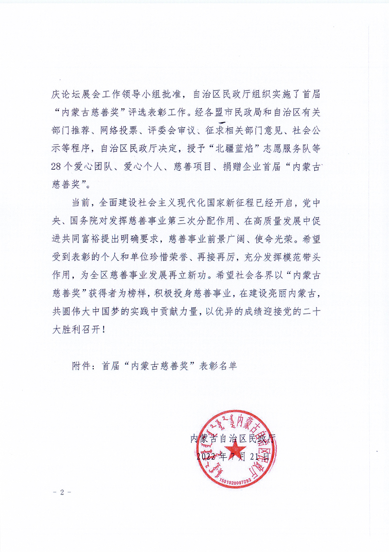 關于表彰首屆“內蒙古慈善獎”獲得者的決定